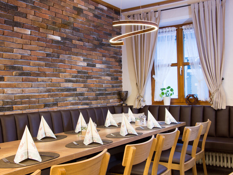 - Unser WirtshausDie GaststubeEinladend & GemütlichDie gemütliche Gaststube bietet Platz für 45 Gäste und strahlt mit ihrem authentischen Charme eine warme und einladende Atmosphäre aus. Für größere Gesellschaften steht unser geräumiges Nebenzimmer bereit, das bis zu 100 Gäste aufnehmen kann und ideal für Feiern und Veranstaltungen ist.
